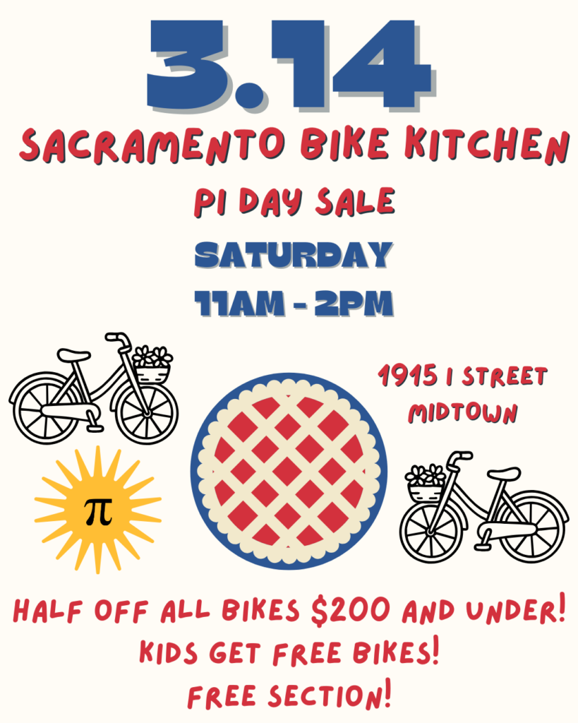 Plus, giving you even more 3.14159 reasons to come by… bikes are free to kids under 18 with guardian present! And we will be having a “free section” of parts, tires and wheels!